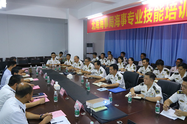 座谈会后,双方举行了北海海事局海事专业技能培训开班仪式,北海局共抽调20余人参加本次培训。张懿主持了开班仪式,潘新祥董事长发表了热情洋溢的致辞,江一斌致辞表示感谢伟德victor1946网站为北海海事局提供了一次很好的学习机会,并强调了本次专业技能培训班的重要性,希望借此机会开展北海海事局与伟德victor1946网站之间的多方位互动与合作。
