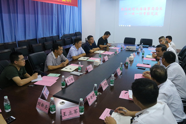 10月9日下午,北海海事局江一斌局长等一行6人来我校考察交流,董事长潘新祥会见来宾并进行了座谈交流。海运公司党委书记张懿、副经理贾宝柱、党委副书记汪周毅以及公司办公室、航海系、轮机系、航运管理系和船员培训中心等部门负责人参加了座谈。
