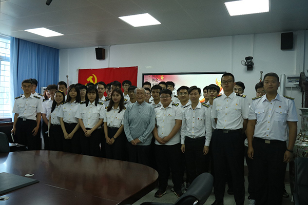 座谈会上。杨教授首先讲述了他自大学以来的七十余年为航海事业奉献的奋斗经历,回忆了当初一半橡树皮掺和一半米面吃的艰苦岁月,着重介绍了在成立海运公司(原航海公司)之初的奋斗历程。谈起当初12位老师从无到有筹备创建航海专业,并因条件限制,只能到外地船厂购买实验模拟器等设备的艰辛,杨老师感慨万千,鼓励并教育我们,社会主义不是说出来的,而是勇敢直面挑战、不畏风浪干出来的。
