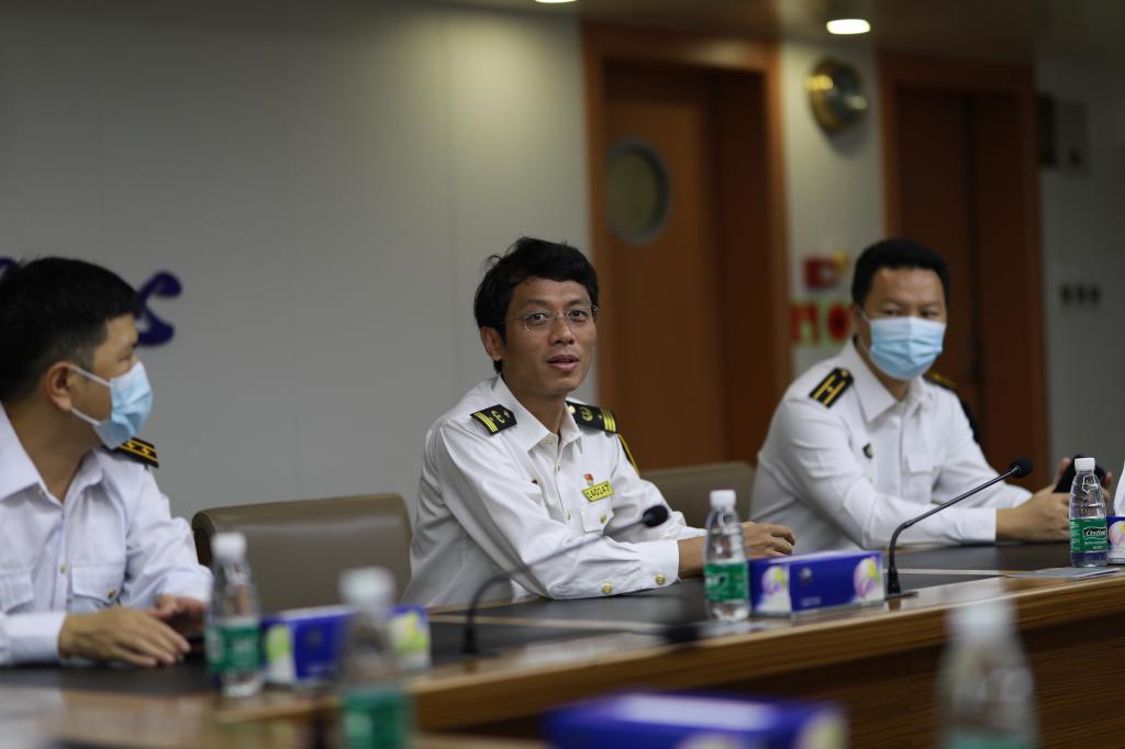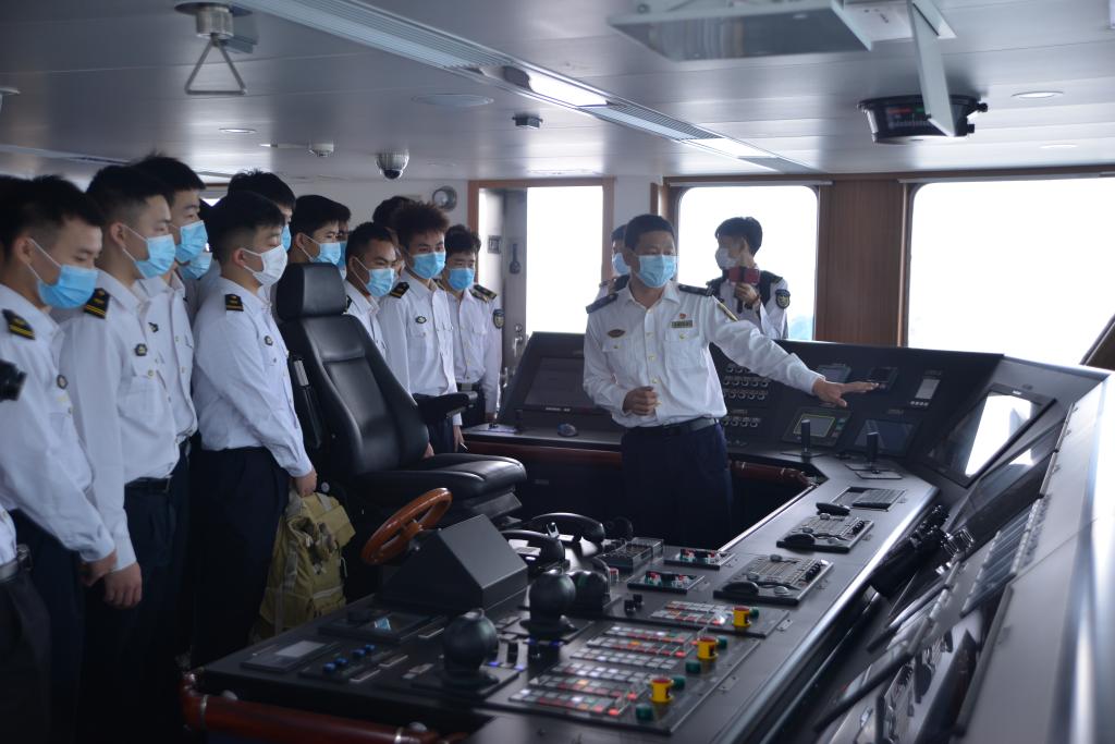 在杨鹍鹏等的带领下,员工有序参观了“深海01”轮的指挥塔台、轮机舱室、执法人员生活区等,观看了深圳海事局宣传视频,了解航海仪器仪表的配备和功能、船舶主机和发电机的功能参数、集控室仪表船舶相关技术参数等,国内首个锂电池动力船舶机舱、全自动化船舶综合电力系统给同学们留下了深刻印象。参观过程中,深圳海事局领导对于同学们的提问给予耐心细致回答,同学们兴趣高昂,纷纷表示获益匪浅,不仅近距离参观了船舶仪器设备,学习了相关专业知识,了解了海上执法人员的工作和生活情况,更激发了投身海洋强国建设的决心。