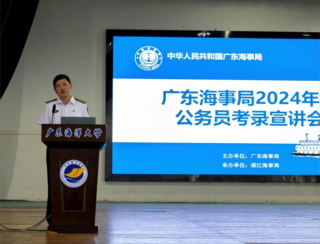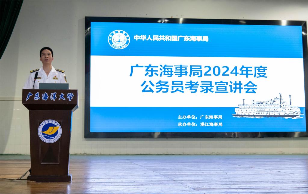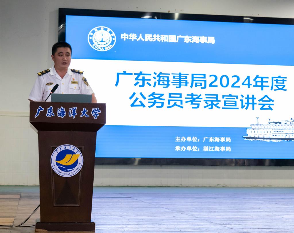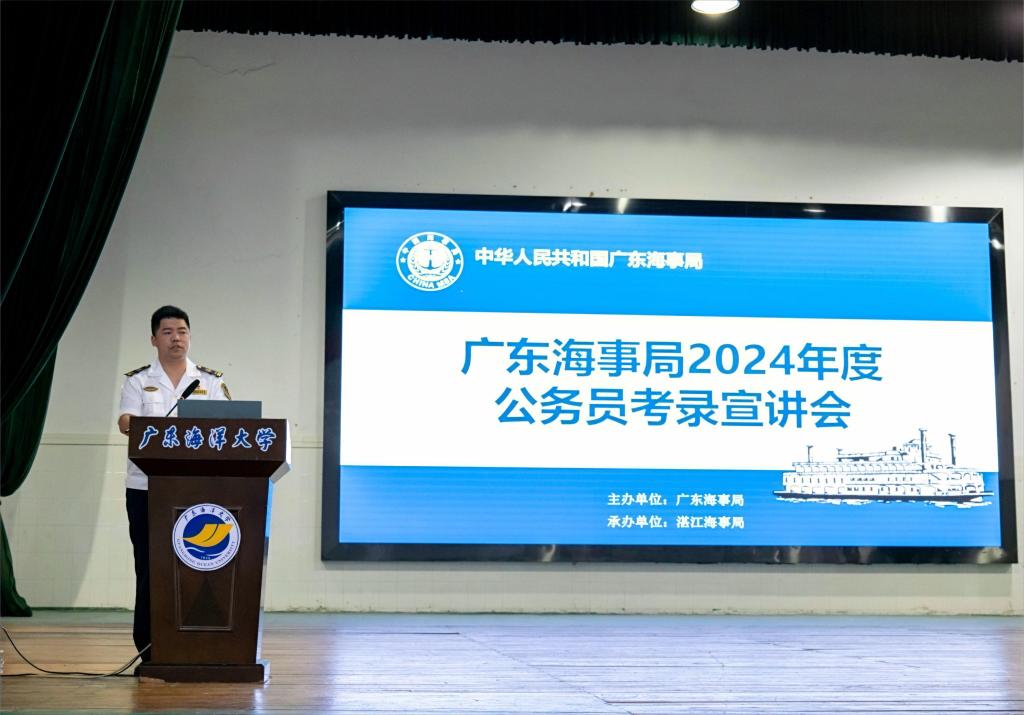 为帮助广大同学全面了解公务员考试,引导和帮助员工积极备考,促进毕业生高质量就业,10月13日下午,由广东海事局主办,湛江海事局承办的2024年度公务员考录宣讲会在公司伟德国际victor1946举行。湛江海事局人事教育处处长刘会清、船员管理处处长邓平贵,惠州海事局大亚湾海事处处长蔡俊杨,船舶与海运公司党委副书记齐昊以及公司300余名师生参加了宣讲会,宣讲会由广东海事局人事教育处陈亚良主持。