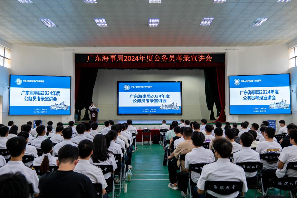 随后,与会人员集中观看了广东海事局宣传片,全方位了解了广东海事局履行水上交通安全监督管理、船舶及相关水上设施检验和登记、防治船舶污染和航海保障等行政管理和执法职责的有关情况。宣讲员详细介绍了2024年度公务员招录招聘计划,职位和岗位设置、专业需求、工作职责等情况。在广东海事系统工作的优秀员工邓平贵、蔡俊杨分享了海事工作的经验体会。