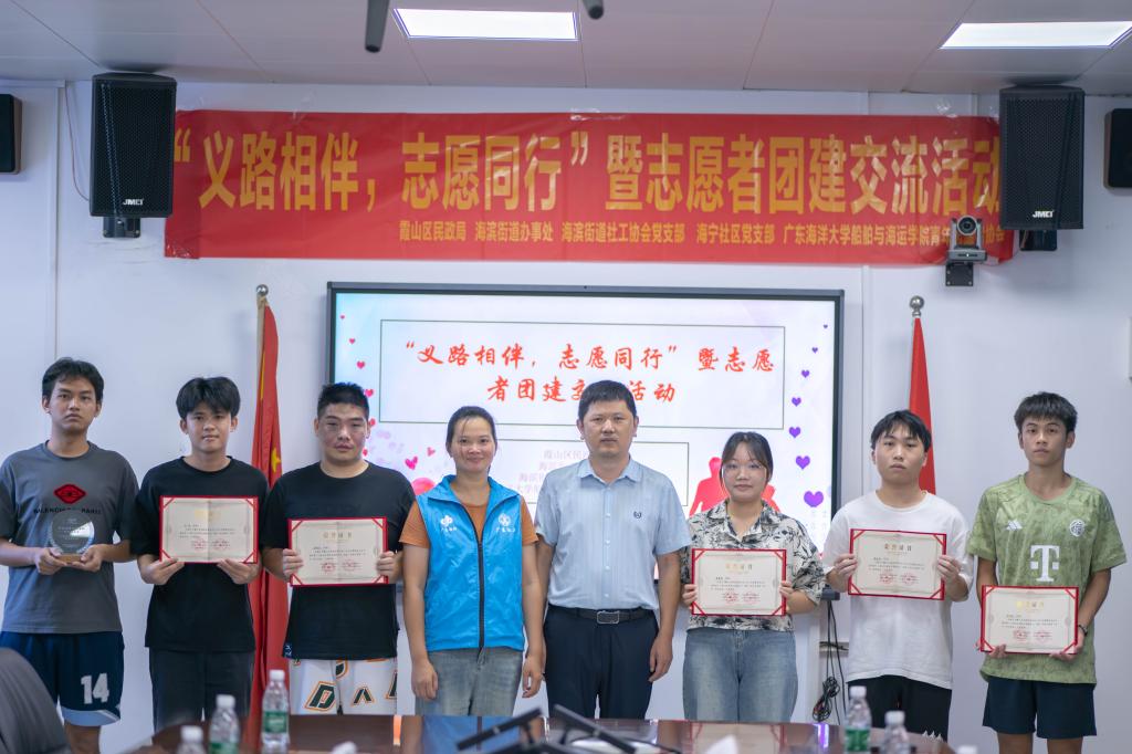 随后,齐昊、陈亚红为430课堂志愿服务活动优秀志愿者、优秀领队、优秀合作团队颁奖。最后,公司与海滨街道就如何进一步加强团建交流、形成育人合力进行深入探讨。