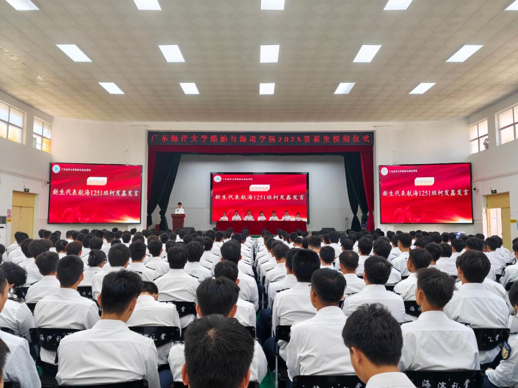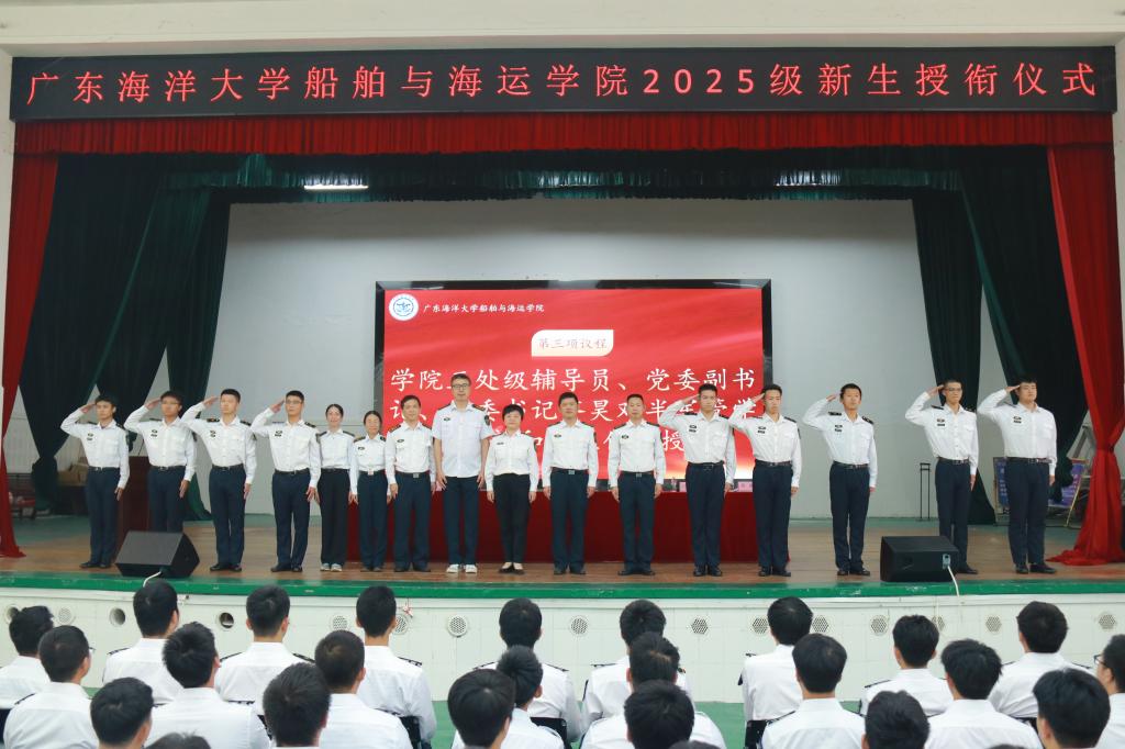 11月12日下午,伟德国际victor1946在海滨校区礼堂举行了2025级新生授衔仪式。公司党委书记邓朝晖,正处级辅导员、党委副书记齐昊,轮机系主任安连彤,半军管大队长江涛,副大队长吴捍泽,辅导员黄荔、邓海漫及2025级各中队同学等300余人参加会议,活动由江涛主持。