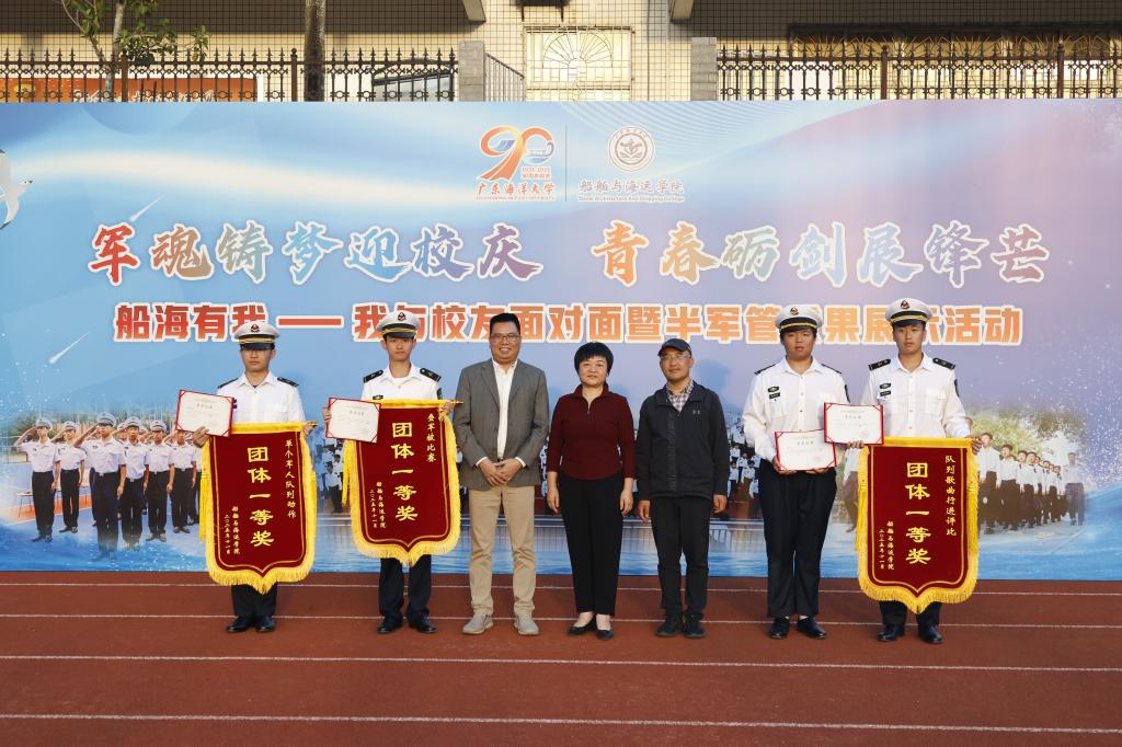 首先,2025级航海类专业员工进行了队列歌曲行进评比、单个军人队列动作和叠军被三项竞赛,用日常训练成果向建校90周年献上了一份特殊的贺礼。随后,邓平贵宣读了获奖名单,员工代表等为获奖集体和个人进行了颁奖。