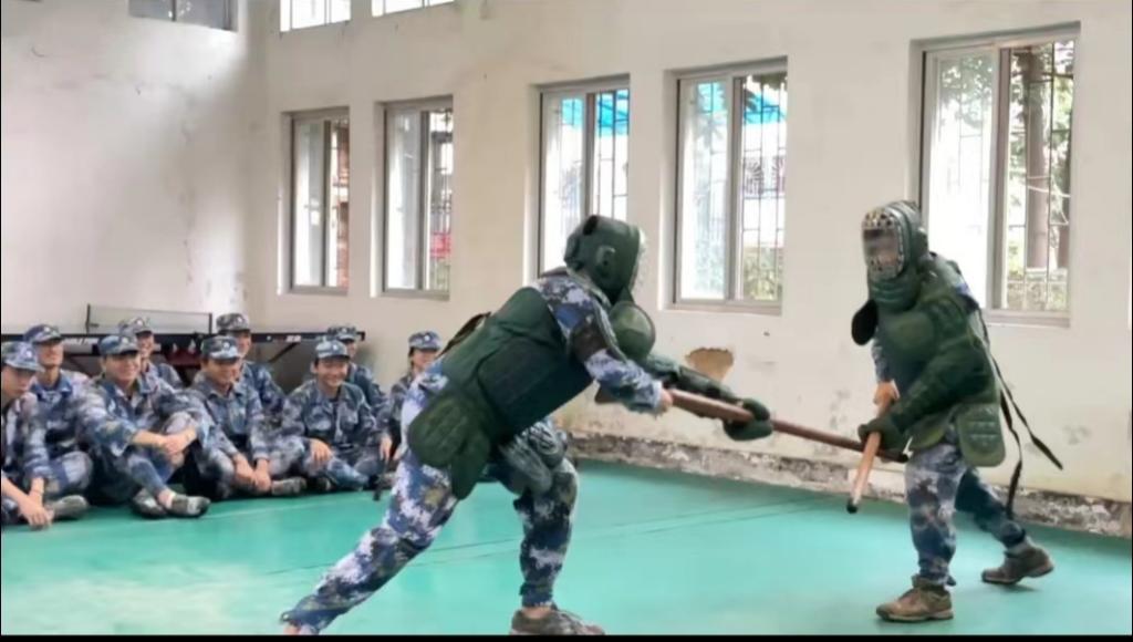 刘抒睿向同学们讲解了刺杀操不仅一项近战歼敌的战斗技能,更是培育战士的血性胆气,锻炼“逢敌亮剑,有我无敌”的勇士精神。随后现场指导同学们进行了“拼刺”实战,让同学们亲身体验“敢于刺刀见红,狭路相逢勇者胜”的战斗。
