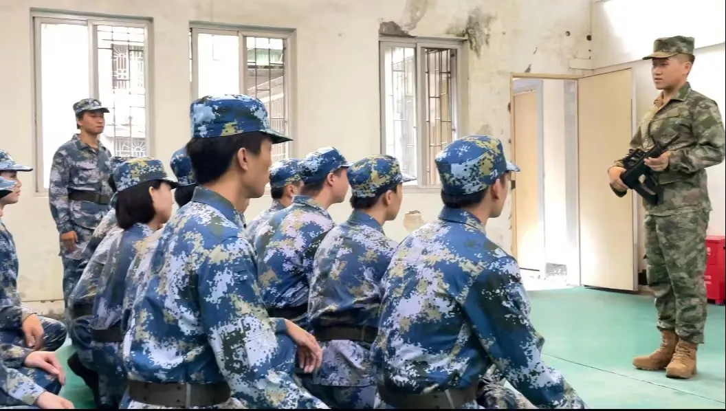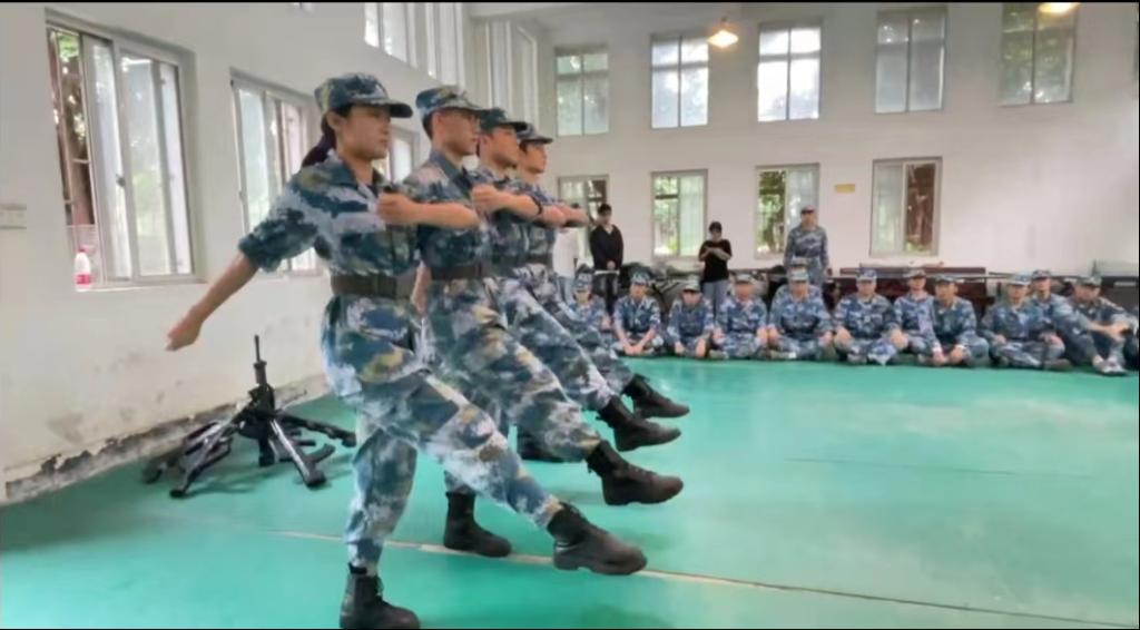 退伍复学胡英康同学对 95式自动步枪的性能和结构进行了详细的讲解,并为同学们示范了“刺杀操”,通过讲解示范、组织训练,让同学们基本掌握了刺杀操的动作要领。