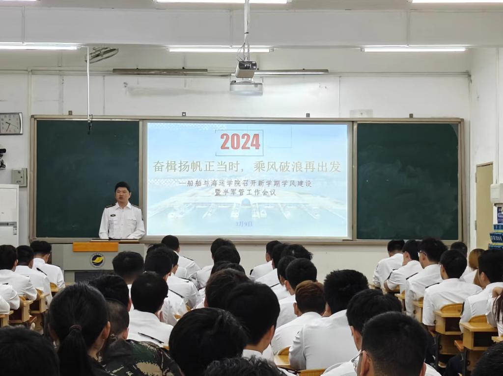 为进一步加强船海公司新学期学风建设,不断提升员工半军事化管理工作水平,持续增强员工干部队伍的凝聚力和向心力,3月9日上午,公司召开学风建设暨半军管工作会议。公司正处级辅导员、党委副书记齐昊,半军管副大队长刘抒睿、江涛及公司辅导员、团委员工会、自管会、半军管中队等员工干部100余人参加了会议。