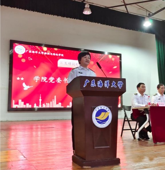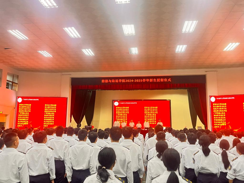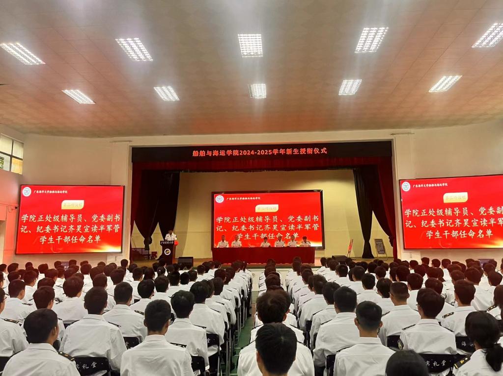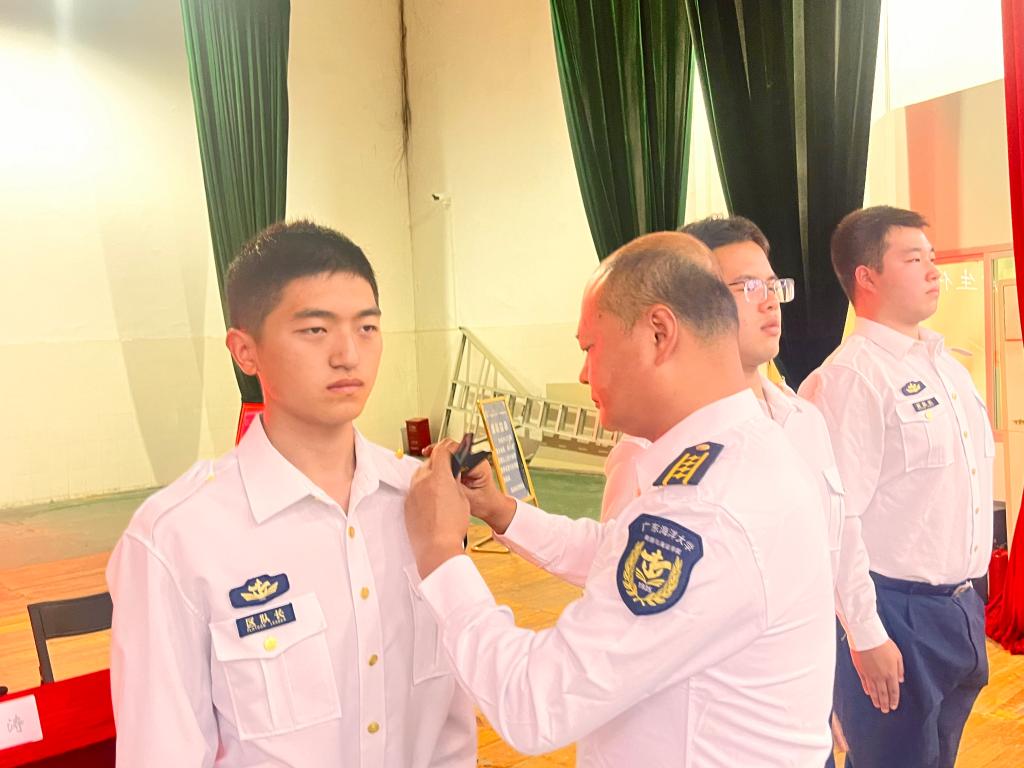 首先,齐昊宣布了新一届半军管员工干部名单,随后,贾宝柱为半军管员工干部和24级员工代表佩戴了“一道杠”校衔。最后,邓朝晖总结讲话,强调半军管对于航海专业员工的重要意义,希望同学们严格遵守公司半军事化管理的各项规定,刻苦训练,认真学习,为建设海洋强国、交通强国贡献自己的力量。