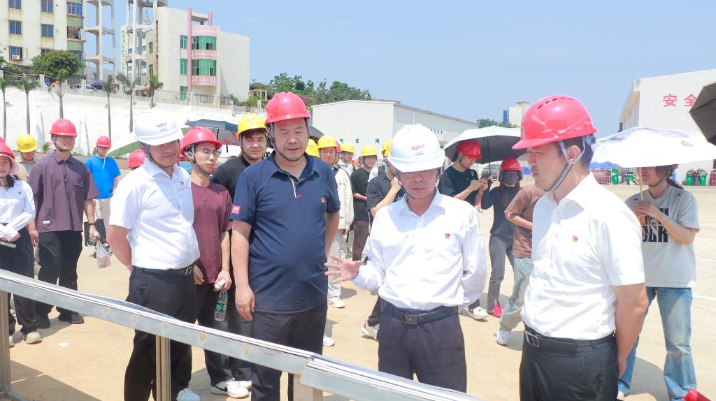 在陈达春等的引导下,师生一行深入生产一线,先后参观了露天水平修理船台、浮船坞“琼海1号”、码头出运平台、浮船坞水下搁墩、导航架等设施。同学们在员工揭梓颖的介绍中了解到该基地是全国最大的客滚船修造基地,同学们纷纷表示要不断加强专业理论学习,像员工一样投入到国家重大工程中去,实现自我价值。