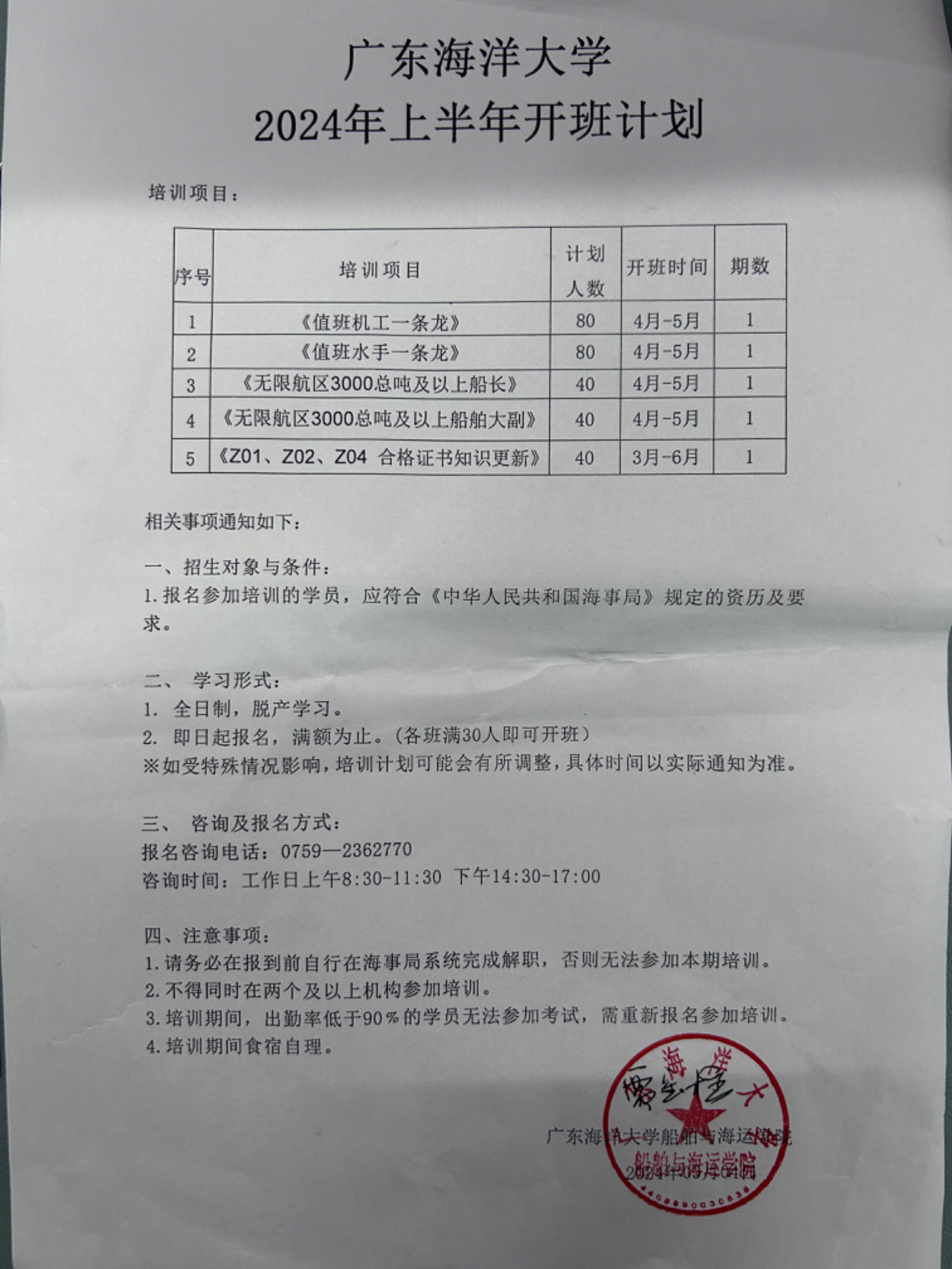 伟德victor1946网站2024年上半年开班计划