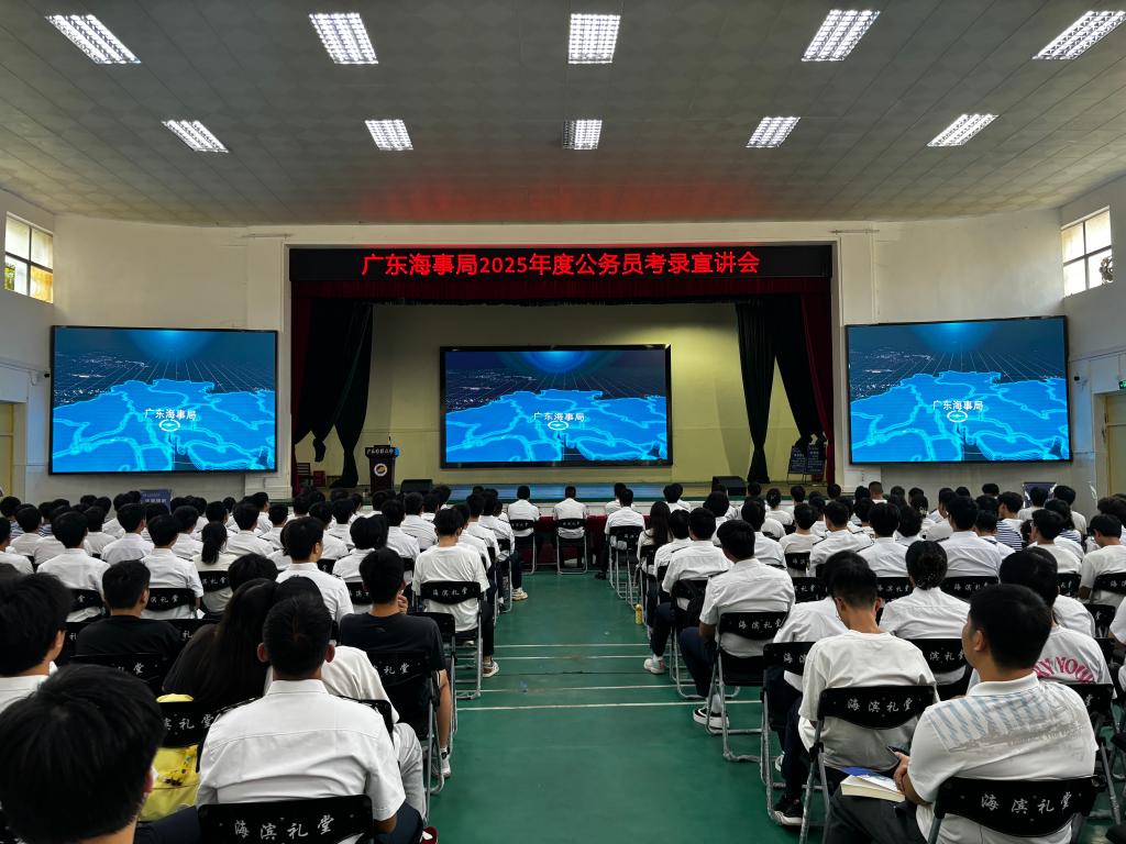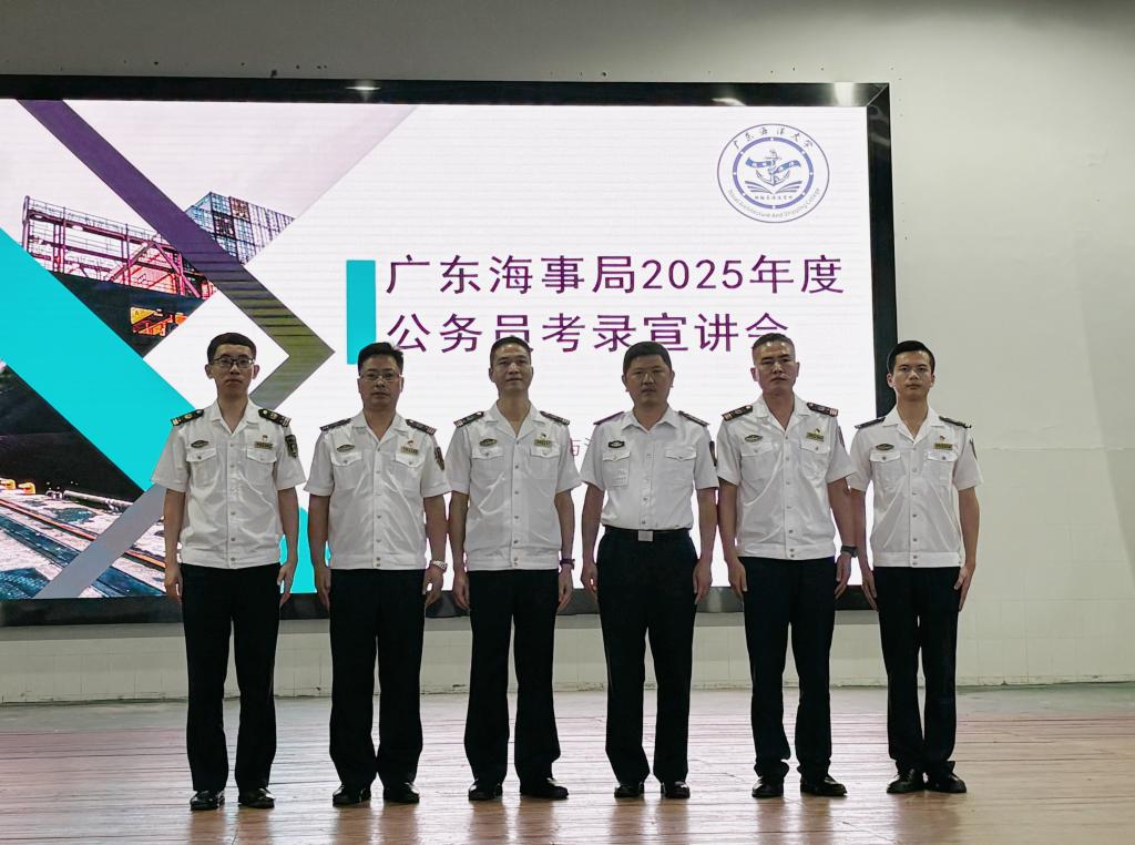随后,与会人员集中观看了广东海事局宣传片,全方位了解了广东海事局履行水上交通安全监督管理、船舶及相关水上设施检验和登记、防治船舶污染和航海保障等行政管理和执法职责的有关情况。金震霖详细介绍了2025年度公务员招录招聘计划,职位和岗位设置、专业需求、工作职责等情况。在广东海事系统工作的优秀员工孙自伟、刘志国分享了海事工作的宝贵经验和深刻体会。