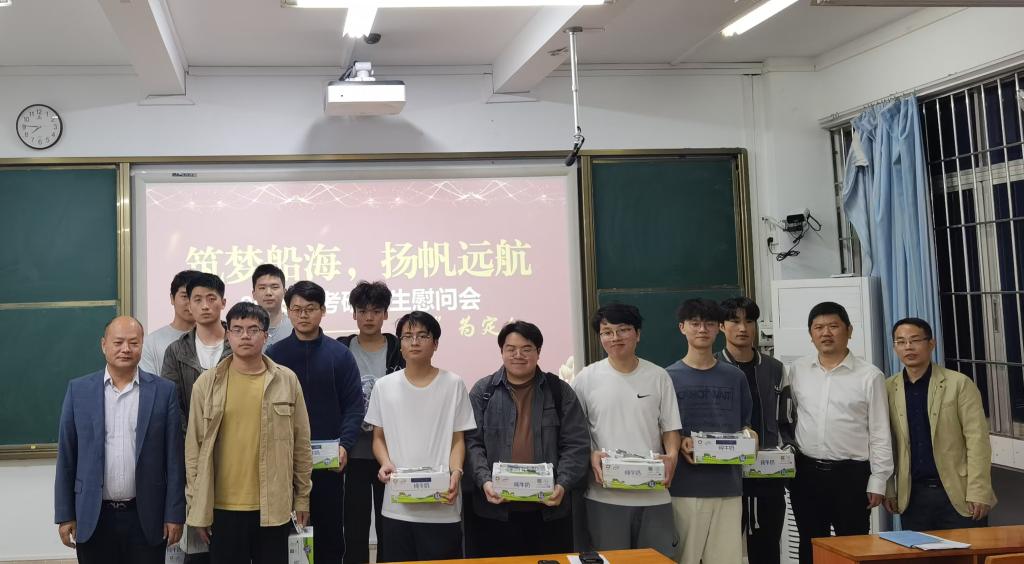 首先,贾宝柱代表公司向考研同学表达了最真挚的祝福,鼓励同学们合理规划时间和进度,注重劳逸结合,保持良好心态,以昂扬的斗志迎接考试。随后,贾宝柱、齐昊、袁剑平等公司领导为同学们送上慰问品。最后,袁剑平为同学们做考前辅导,并分享了考研经验与考研技巧。