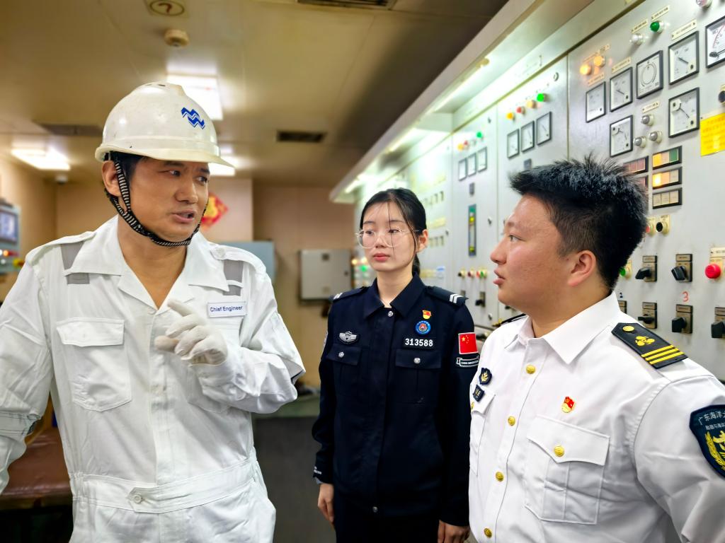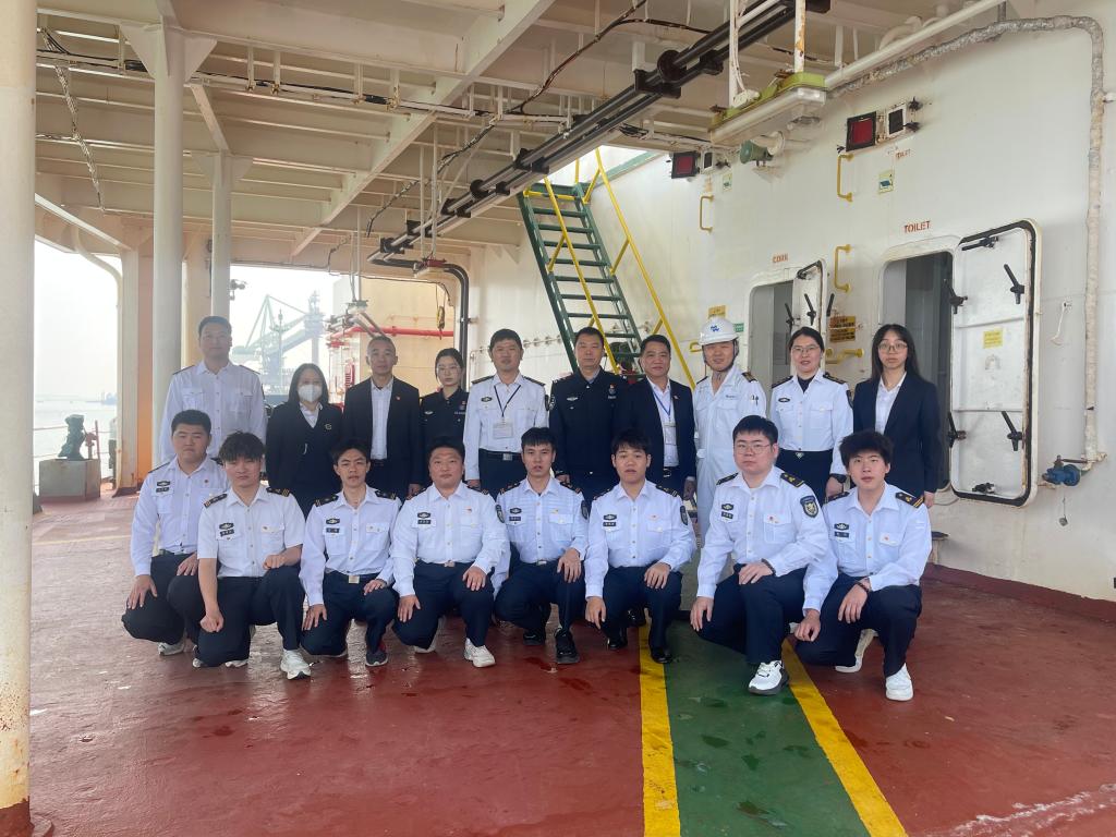 3月20日上午,伟德国际victor1946师生代表登上“大秦轮”,开展了一场别开生面的学习交流活动。伟德国际victor1946正处级辅导员、党委副书记齐昊、湛江国际海员俱乐部主任梁教珍、湛江出入境边防检查站执勤三队教导员张忠堂等出席活动。