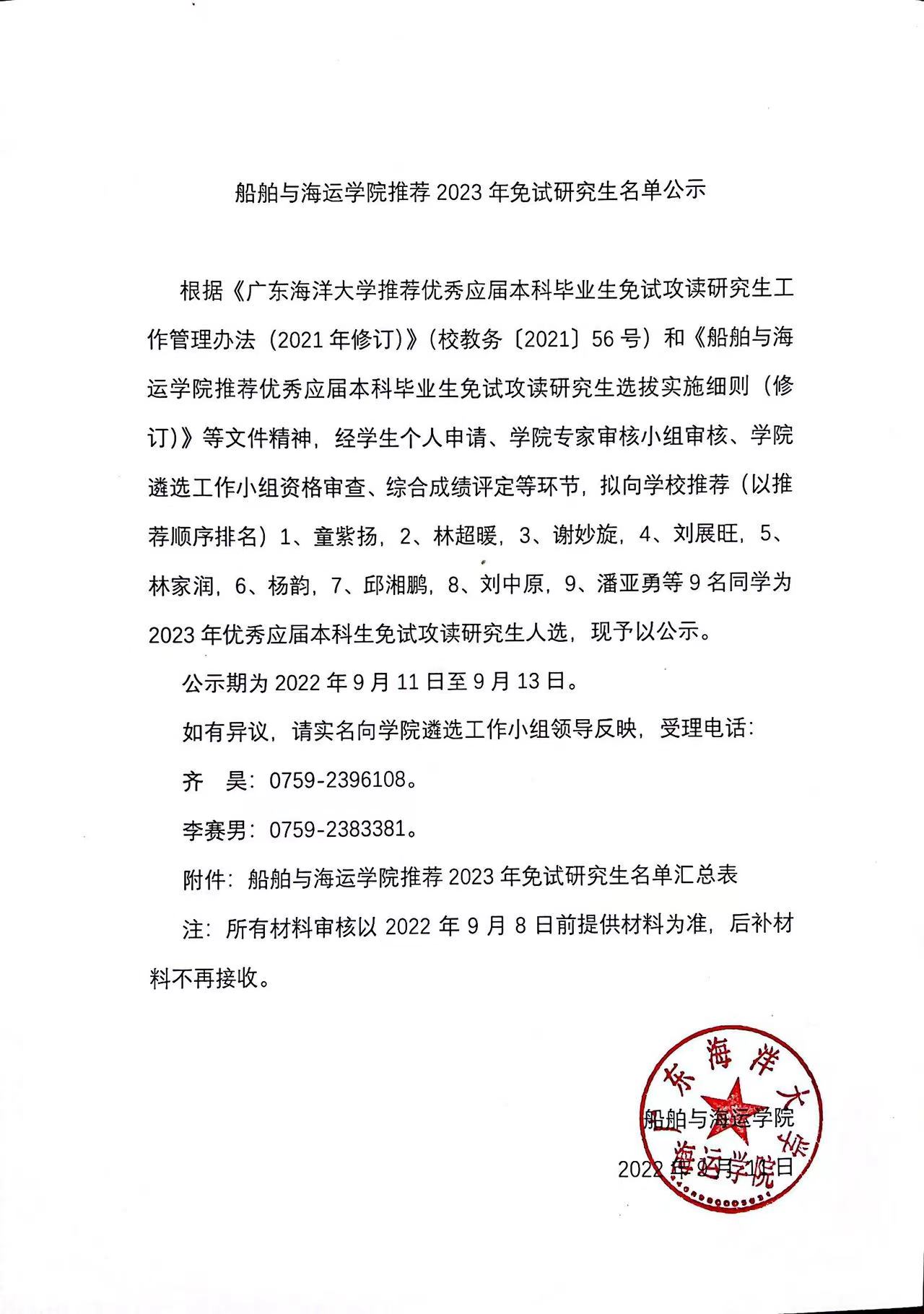 伟德国际victor1946推荐2023年免试研究生名单公示