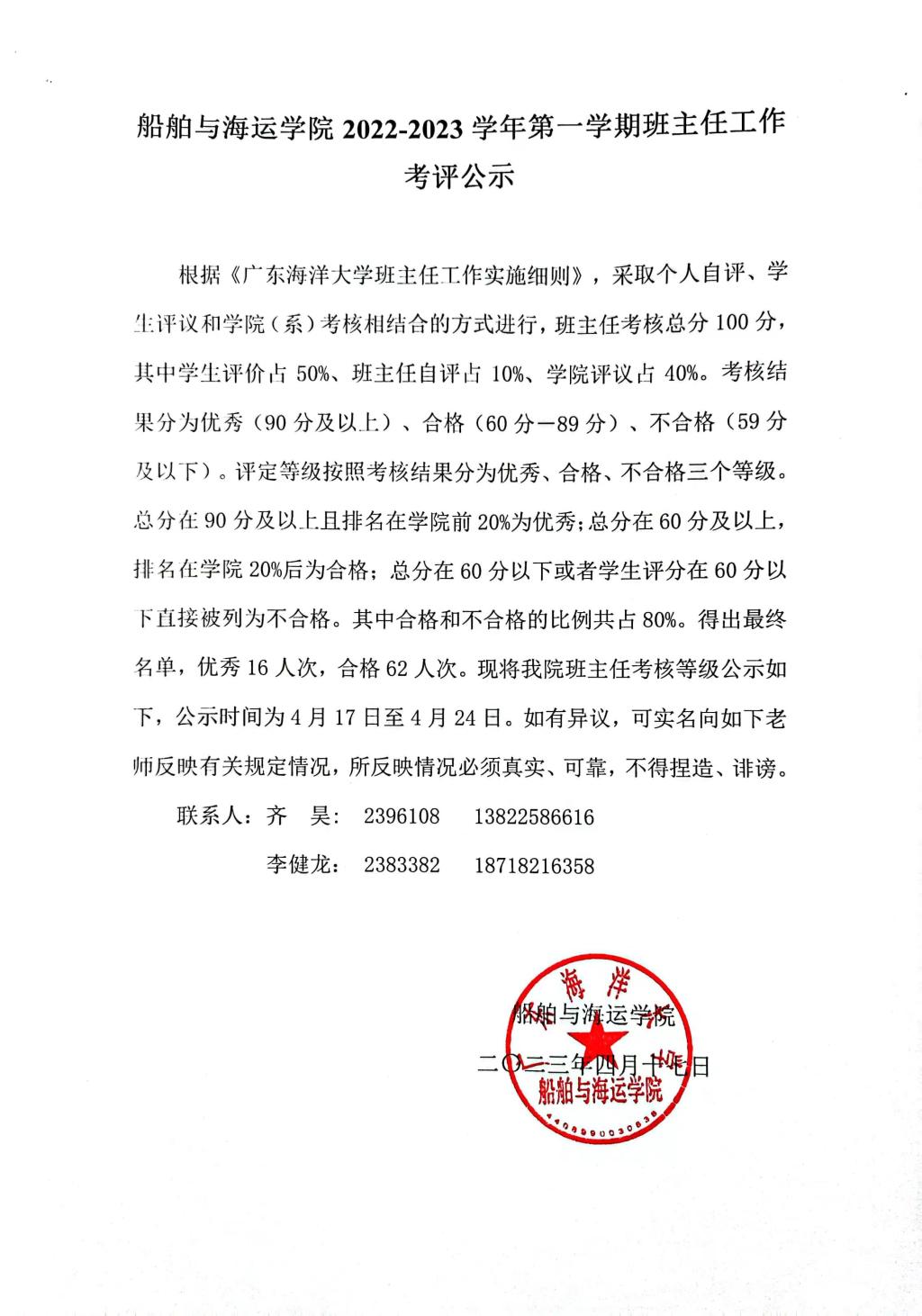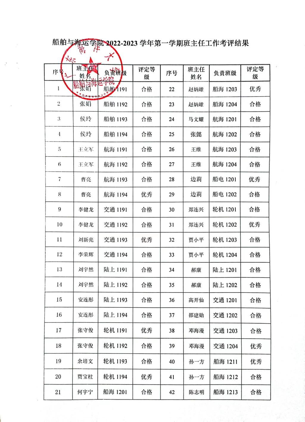 伟德国际victor19462022-2023学年第一学期班主任工作考评公示