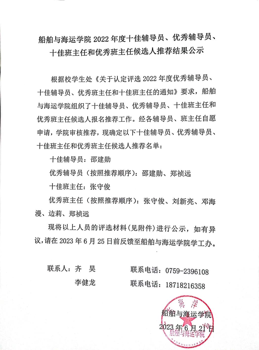 伟德国际victor19462022年度十佳辅导员、优秀辅导员、十佳班主任和优秀班主任推荐候选人情况.pdf