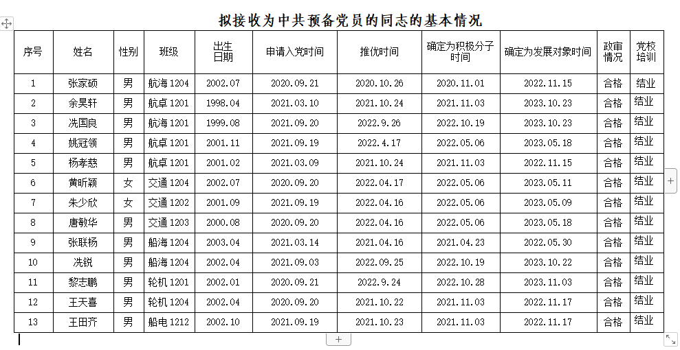 根据《伟德victor1946网站发展党员工作实施细则》规定,经本人提出申请,党组织培养考察,支委会审查研究决定,经公司党委预审通过,拟接收冼国良等13名同志为中共预备党员。现将有关情况予以公示,征求党员、群众意见。