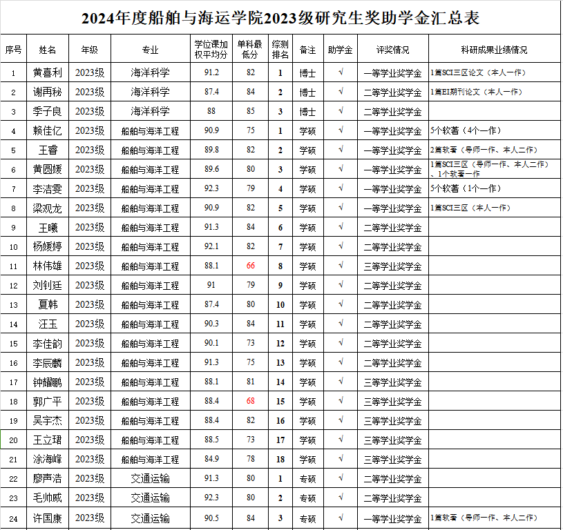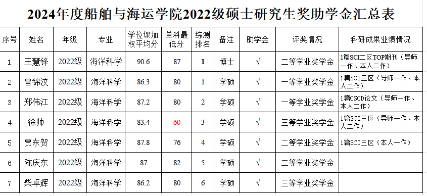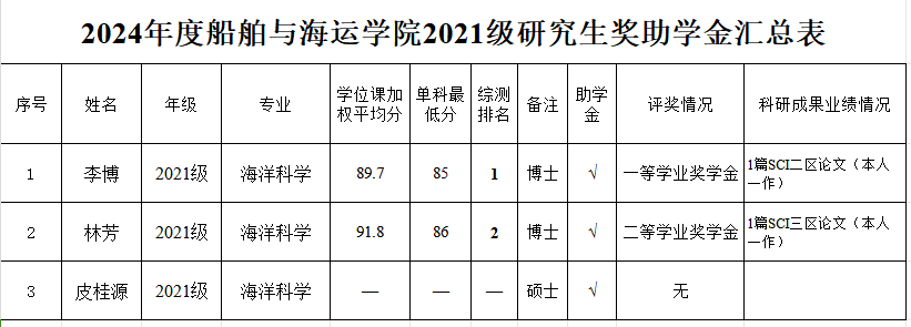 根据《广东省教育厅关于做好2024年秋季学期员工资助工作的通知》及《公司关于开展2024年研究生国家奖学金、学业奖学金和助学金评审工作的通知》精神,按照《伟德victor1946网站全日制研究生奖助学金实施办法》,经个人申请、公司评审小组认真审核及严格评选,拟确定获得研究生助学金、学业奖学金人员名单。其中,2021级海洋科学专业皮桂源同学因休学补发半年助学金,其余硕士研究生均不分等级全部获得助学金。现将评审名单进行公示(详见附表)。