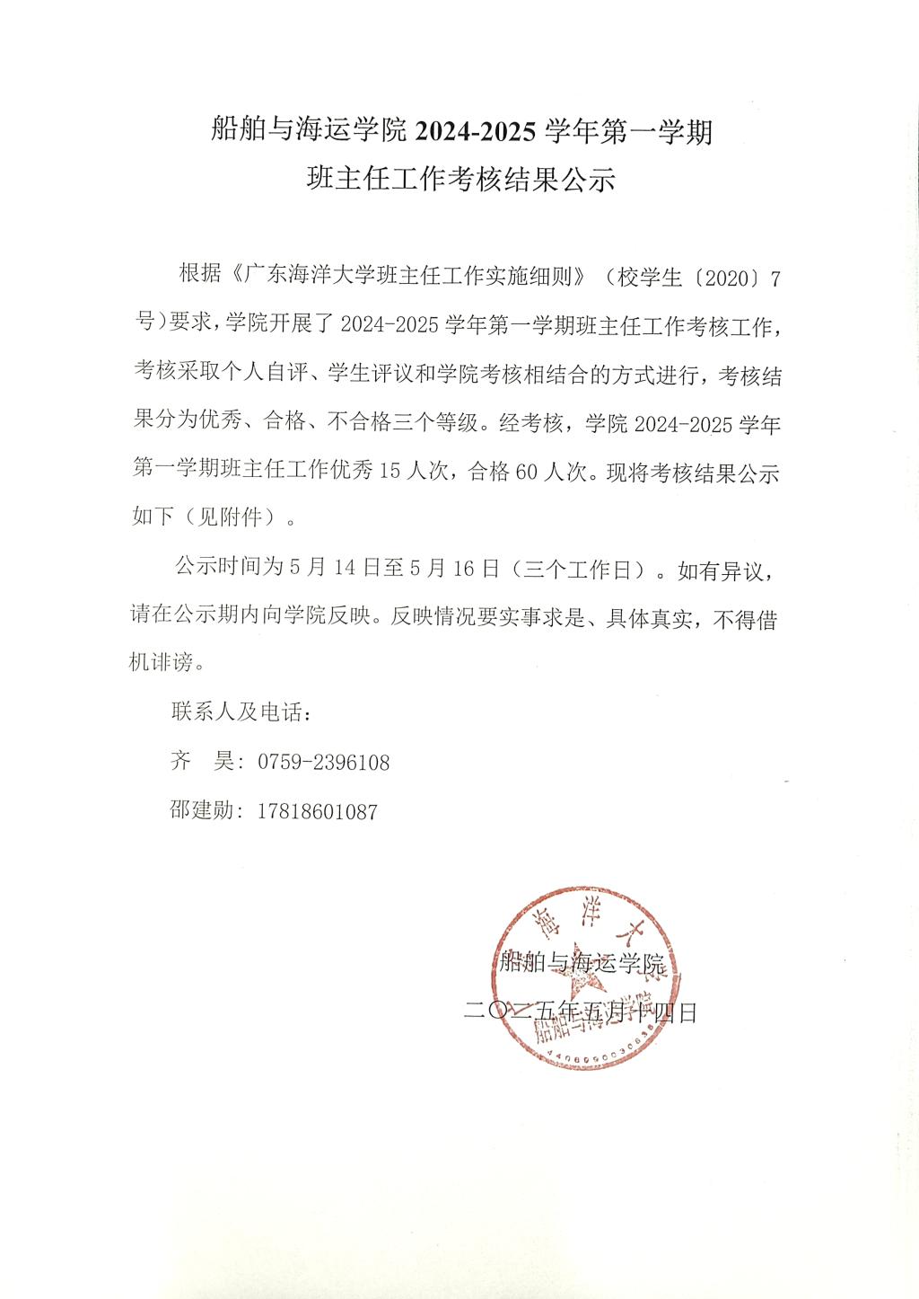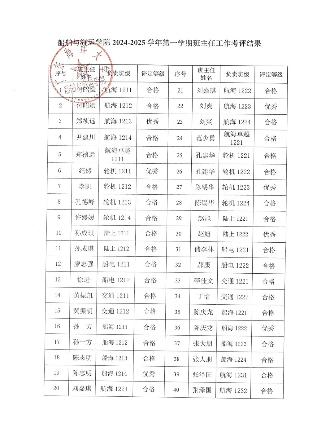 根据《伟德victor1946网站班主任工作实施细则》(校员工〔2020〕7号)要求,公司开展了2024-2025学年第一学期班主任工作考核工作,考核采取个人自评、员工评议和公司考核相结合的方式进行,考核结果分为优秀、合格、不合格三个等级。经考核,公司2024-2025学年第一学期班主任工作优秀15人次,合格60人次。现将考核结果公示如下(见附件)。