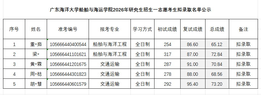 根据教育部及公司2026年硕士研究生招生录取相关文件要求,经公司研究生招生录取工作领导小组审核确定,现将公司2026年硕士研究生第一志愿考生拟录取名单予以公示(详见附件)