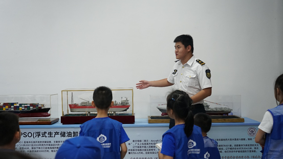 在参观完海上石油981平台后,同学们来到了教学楼101教室。志愿者以公司杰出员工、航海界翘楚——陈宏泽船长为典范,深情地向同学们回顾了公司航海类教育的辉煌历程和卓越人才培养的成就。他们详细讲述了陈宏泽船长在航海事业中的杰出贡献,以及他身上所体现出的坚定信念、卓越能力和无私奉献的优秀品质。这些叙述不仅让同学们对航海专业有了更深的认识,也激发了他们追求卓越、服务社会的热情。