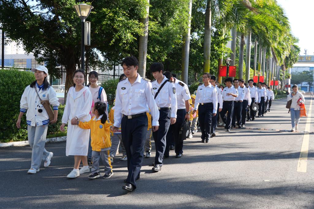 随后,志愿者们与家长们牵着孩子们的手,漫步在校园的小道上,感受着浓厚的学术氛围和独特的海滨风情。他们一路欢声笑语,期待着即将开始的探索之旅。