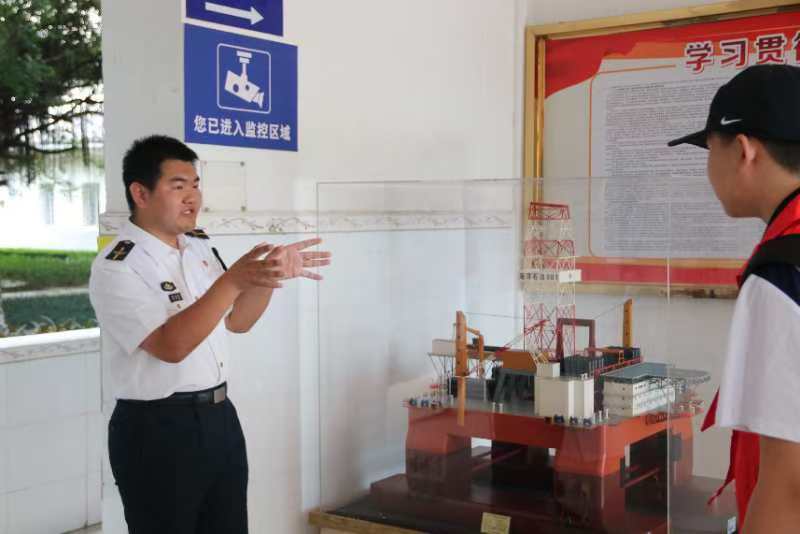 随后,师生们来到了教学楼下的981海上石油平台模型前。这座平台象征着我国海洋石油工业的辉煌成就,员工们纷纷驻足观看,聆听讲解员的详细解说,对海洋石油开采有了更直观的认识。
