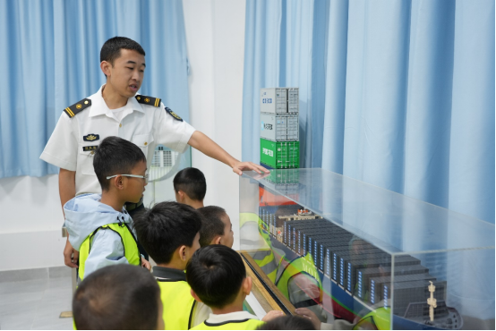 最后一站,小朋友们来到了科普基地的船模室,这里就像是一个航海世界的微缩博物馆,陈列着不同类型的船模。志愿者逐一讲解这些形态各异的船模,小朋友们围在展柜前,眼睛里闪烁着惊叹与喜爱的光芒,细细观赏着每一个船模的独特之处,久久不愿离去,完全沉浸在了航海的奇妙世界里。