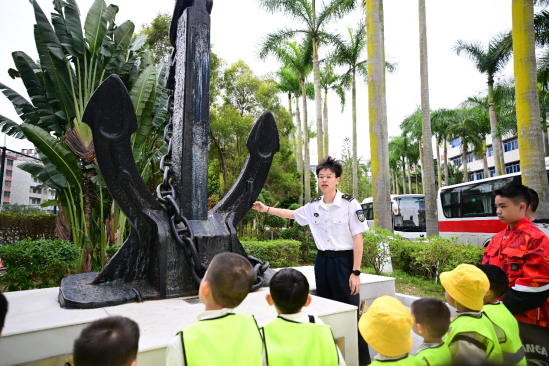 活动伊始,小朋友们的第一站来到了伟德国际victor1946极具标志性的船锚雕塑处。现场的志愿者们热情洋溢,用通俗易懂的语言为小朋友们科普起船锚的结构与作用。从锚爪的形状设计到锚杆的稳固作用,再到整个船锚如何在船舶停靠时发挥关键力量,志愿者们讲解得细致入微,小朋友们也听得格外认真。为了留下这难忘的瞬间,小朋友们还在船锚处整齐排列,绽放出灿烂的笑容,合影留念,那一张张纯真的笑脸与船锚共同构成了一幅美好的画面。