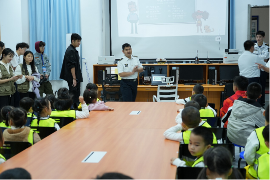 第三站,大家移步至科普基地的会议室,这里瞬间变成了航海知识的小课堂。志愿者们精心准备了内容丰富的航海知识科普视频,在观看的过程中,志愿者们还不时穿插一些与视频相关的问题,小朋友们纷纷举起小手,踊跃回答问题,牢牢抓住了小朋友们的注意力,现场欢声笑语不断,大家在轻松愉快的氛围中进一步加深了对航海知识的理解与掌握。