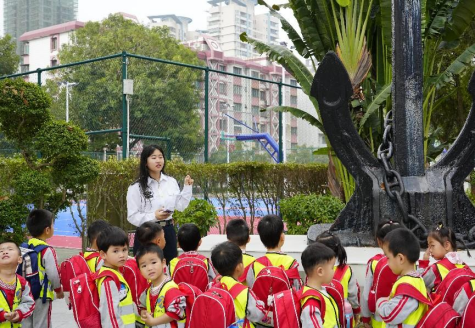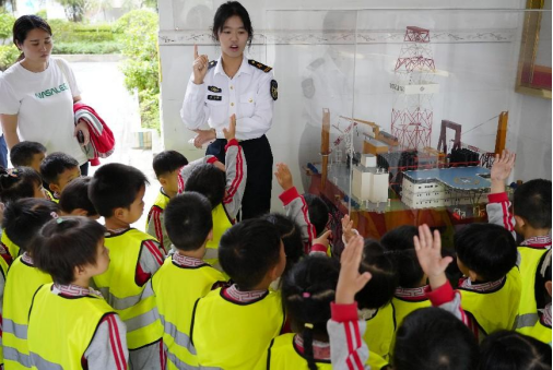 小朋友们首先来到伟德国际victor1946的船锚旁,这个巨大的船锚立刻吸引了他们的目光。现场的志愿者亲切地给小朋友们讲起船锚的故事,从锚杆、锚爪等部件,用简单有趣的话语,让小朋友们理解船锚的构造。志愿者还通过提问、互动的方式,引导小朋友们思考,小朋友们纷纷踊跃举手,回答志愿者的问题,对回答的小朋友给予糖的奖励。
