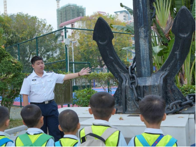 活动伊始,小朋友们的第一站来到了引人注目的船锚处。现场的志愿者热情且专业地向孩子们简述了船锚的重要作用以及其精巧的构造。在志愿者细致的讲解下,孩子们了解到船锚在船舶停靠等过程中发挥的关键稳定作用,也知晓了它是如何通过自身独特的结构来实现这一功能,一个个都听得聚精会神,眼中满是对新知识的渴望。