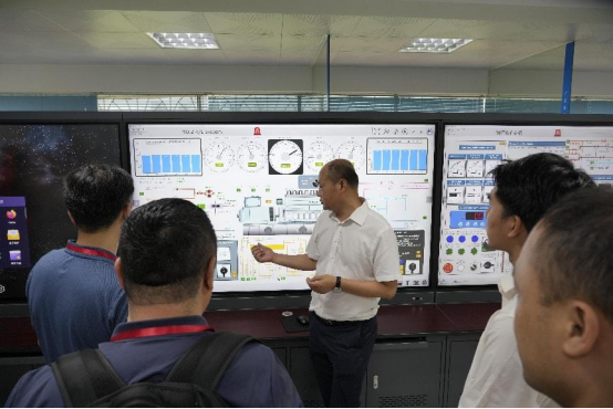 在轮机模拟实验室,贾经理逐一介绍了模拟设备的功能及应用场景,从轮机系统仿真运行到故障诊断实训,全方位展示了公司在实践教学中的创新举措。