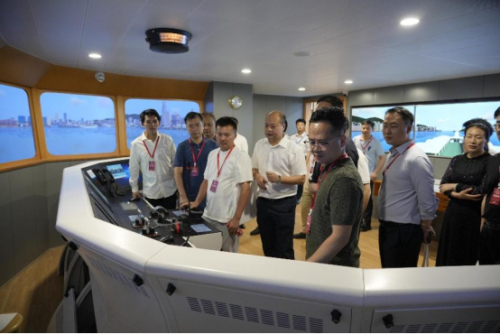 随后,员工们来到船舶虚拟仿真技术工程研究中心。贾经理从实验室平台搭建、科研项目成果、人才培养模式等方面,现场演示的船舶驾驶虚拟仿真系统令员工们直观感受到科技与航海教育的深度融合。