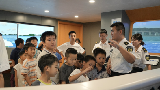 活动的最后一站,孩子们来到了航海模拟器前。在这里,他们化身小小船长,坐进模拟驾驶舱,亲身体验驾驶船舶的乐趣。在模拟器中,孩子们操控着方向盘,感受着船舶在风浪中航行的感觉,仿佛真的置身于浩瀚海洋之上。这种身临其境的体验,让孩子们对航海工作有了更直观的感受,也激发了他们对海洋事业的向往。
