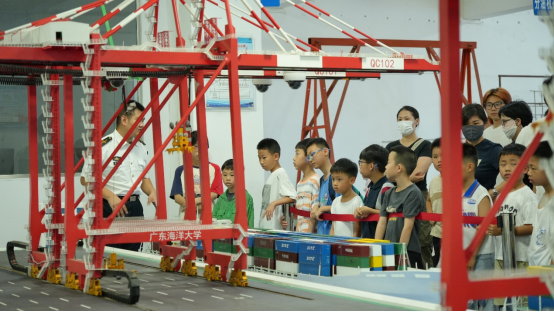 在无人化自动码头实验室,孩子们迎来了又一场知识盛宴。志愿者通过生动形象的演示和讲解,让孩子们了解了无人化自动码头的工作原理。原来,无人集装箱卡车在码头上来回穿梭,自动化起重机精准地将集装箱吊起、放下,整个过程高效且流畅,这一切都得益于先进的科技。孩子们亲眼见证了科技在航海领域的神奇应用,纷纷感叹我国科技的发展速度之快,对航运效率的提高有了更直观的认识。