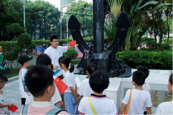 活动伊始,同学们来到了公司标志性的船锚雕塑前。志愿者们化身知识使者,用生动形象、通俗易懂的语言,为同学们详细介绍了船锚的作用及其工作原理。小朋友们听得津津有味,当了解到船锚竟是万吨巨轮在大海中稳如磐石的“刹车”时,眼中闪烁着好奇与惊叹的光芒,仿佛在那一刻,他们与神秘而广阔的海洋拉近了距离。