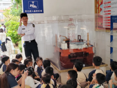 活动最后一站,小朋友们走进科普基地的船模室。这里像座微缩航海博物馆,各式船模琳琅满目,瞬间抓住了孩子们的目光。志愿者围绕船模展开讲解。孩子们围在展柜前,眼睛里满是惊叹与喜爱,像夜空中闪烁的星星。这场近距离观察与讲解,让孩子们初步认识了我国海运事业的发展,也读懂了不同船舶在货物运输中的分工,迟迟不愿离开这奇妙的航海世界。